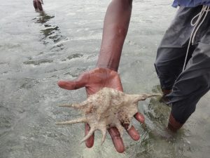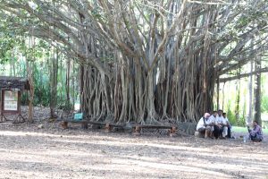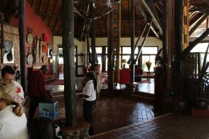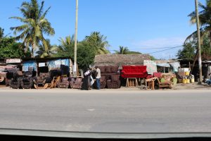 Gleich daneben befindet sich der Markt. Man nimmt sich mal alles mit was einem interessiert, dann entscheidet man was man nimmt und verhandelt. Man muß auf jeden fall vom ersten Stand was mit nehmen, weil das ist der erste Stand, und beim Stand seiner Frau. Später beim Verhandeln muß man das aber nicht nehmen. Ich hatte fünf Kleinigkeiten ausgesucht. Er wollte 150 Dollar. Ich nahm dann aber nur drei und handelte runter auf 25 Dollar. Wahrscheinlich immer noch zuviel, hätte aber sicher noch weiter handeln können. Jetzt hatte ich 25 nicht passend und gab 30, war mir aber sicher daß ich kein Geld zurück bekomme. Er sagte er müsse wechseln gehen, was natürlich niemand konnte, und brachte mir statt dessen ein Kettchen.