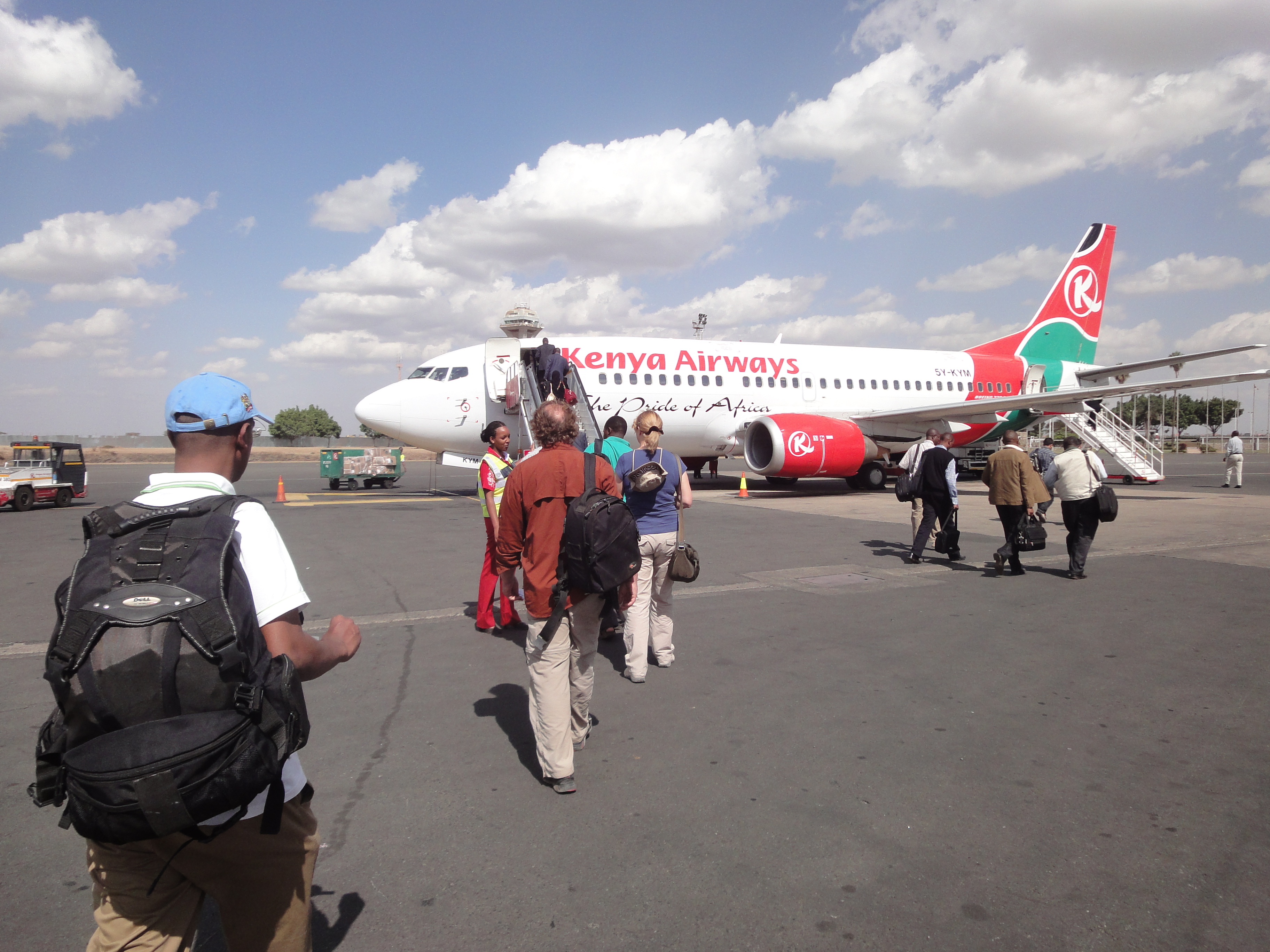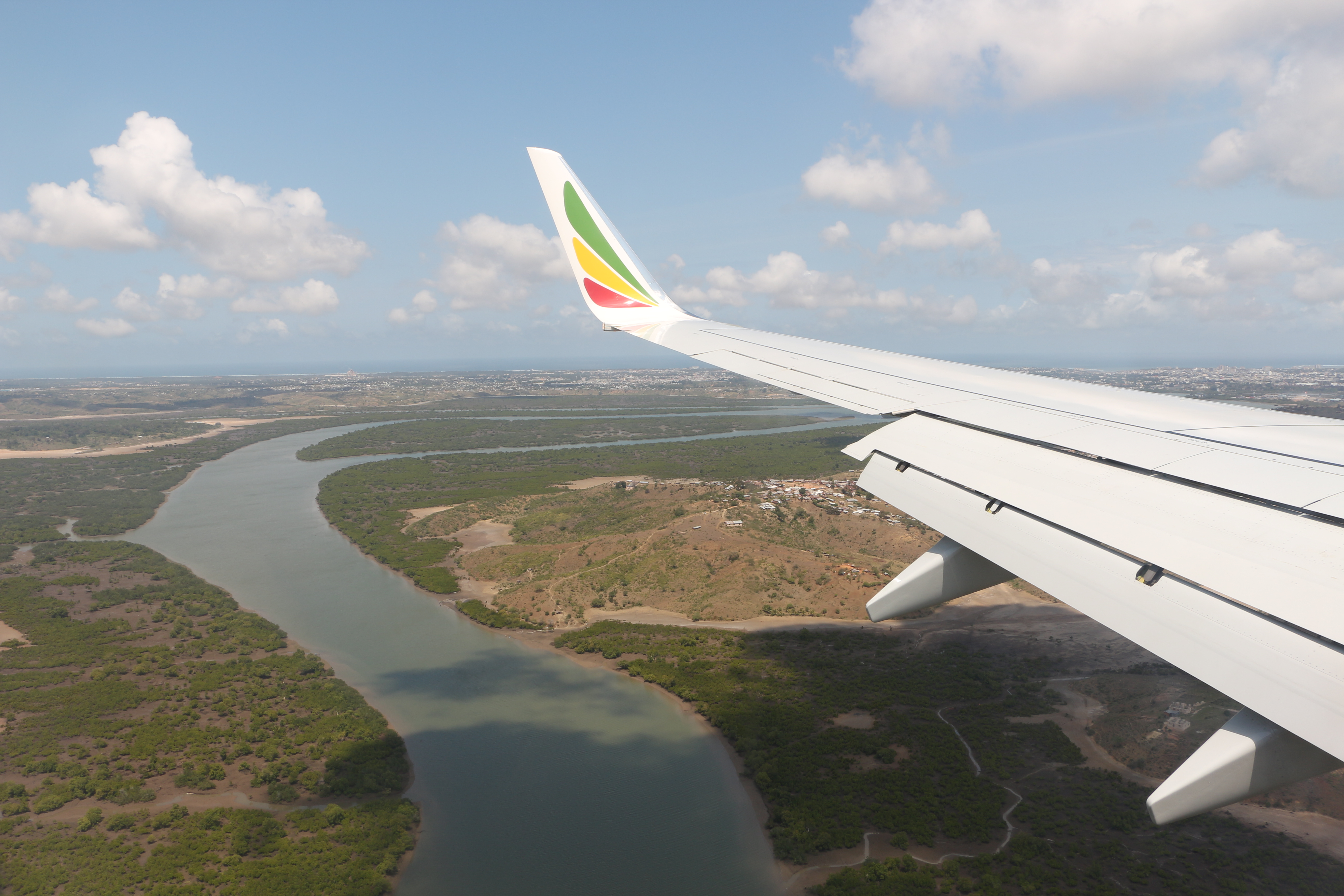 Gestartet in München, umgestiegen in Wien, dann Über Kenia um den Kilimanjaro nach Tansania. Wieder umgestiegen dann nach Mombasa.