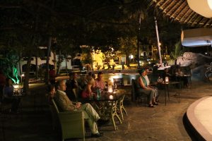 Affen und kleine Echsen. Abends Musik mit Tanz.