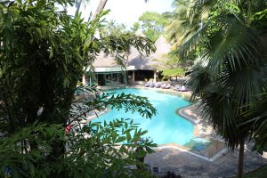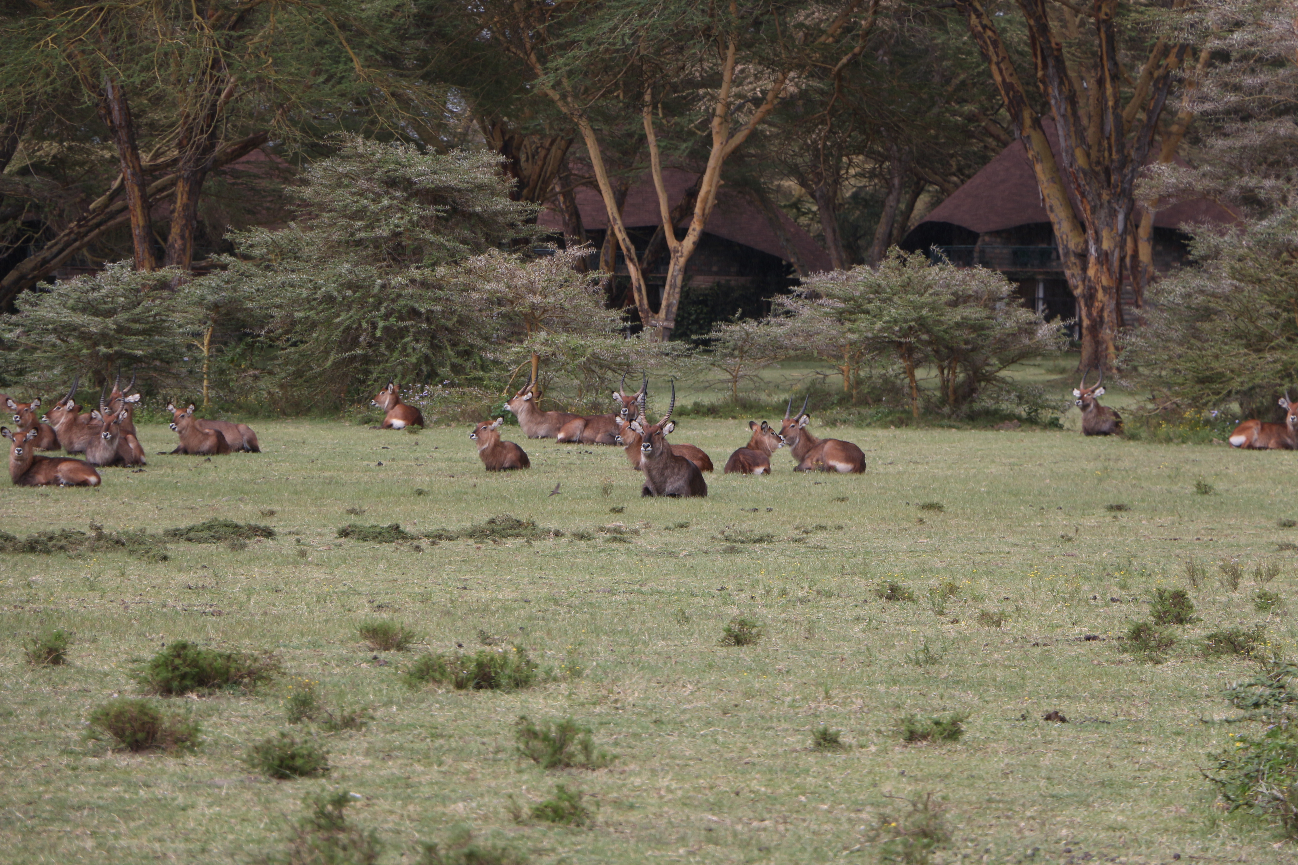 Das ist alles zwischen den Bungalows zu sehen, sogar die Giraffen und Flußpferde.