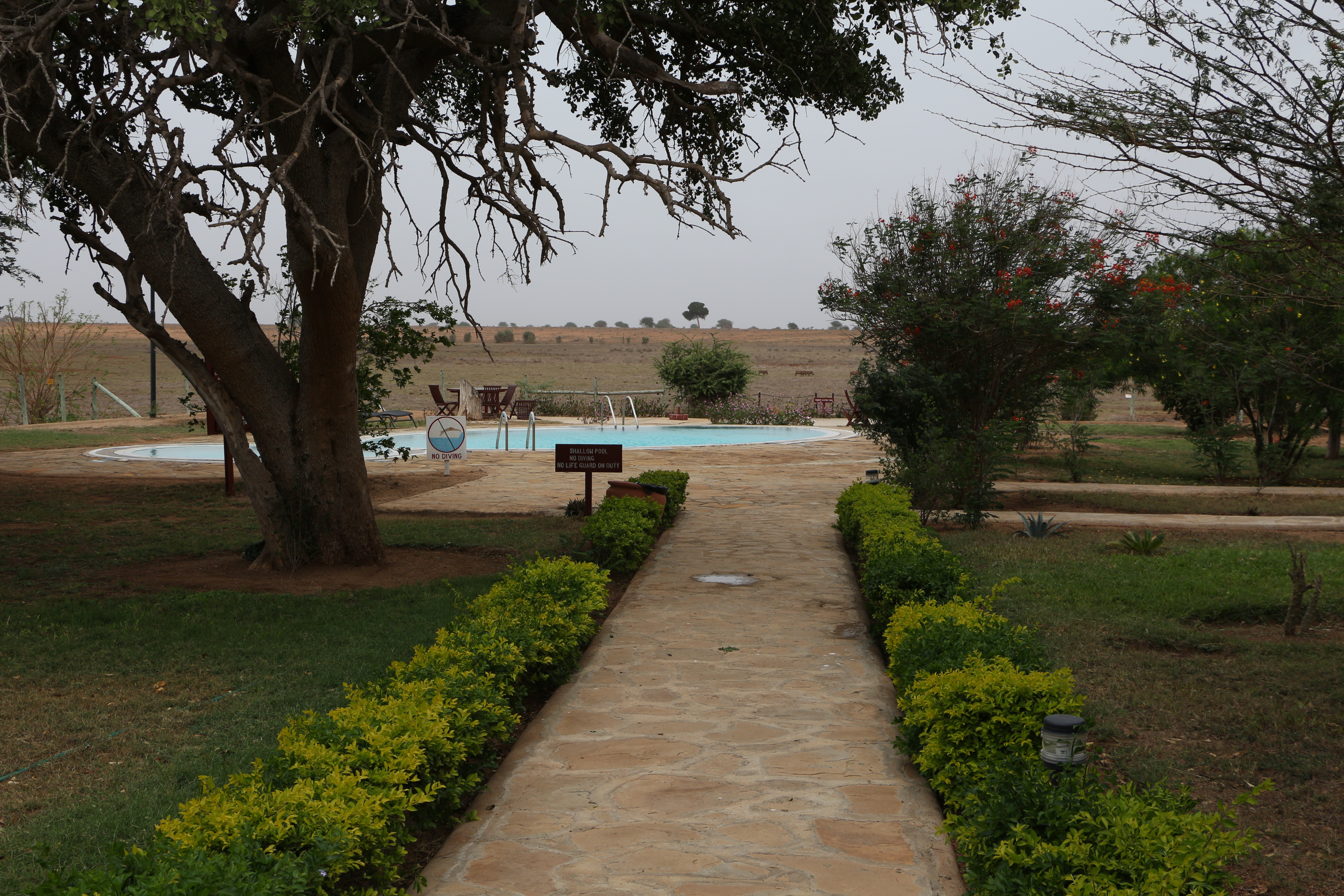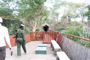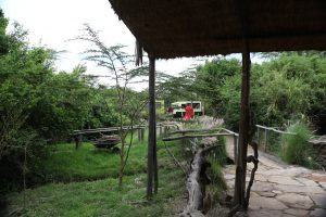 Dann gibt es noch eine Klingel. Wenn man zum Beispiel ins Restaurant will muß man vorher Klingel, dann hohlt uns der Massai ab. Die Massai sollen (so sagte man mir zumindest) die einzigen sein, die wirdklich keine Angst vor Wildieren haben.