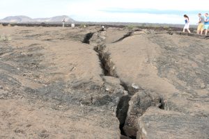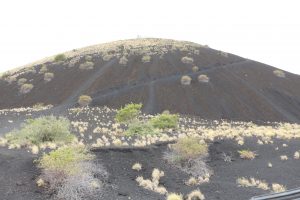 Das war mal ein Vulkan. Darum schwarze Felsen und schwarze Straßen.