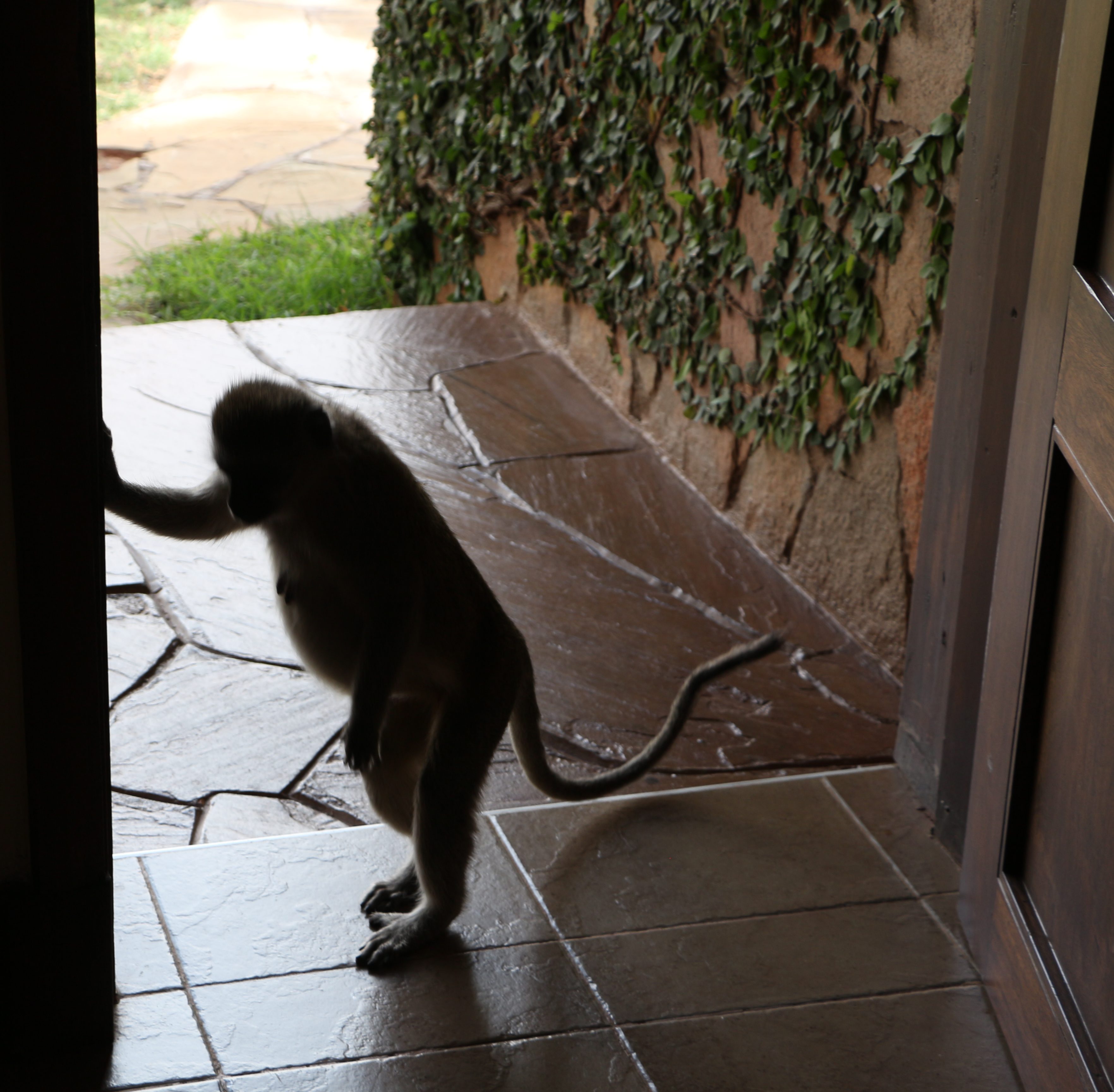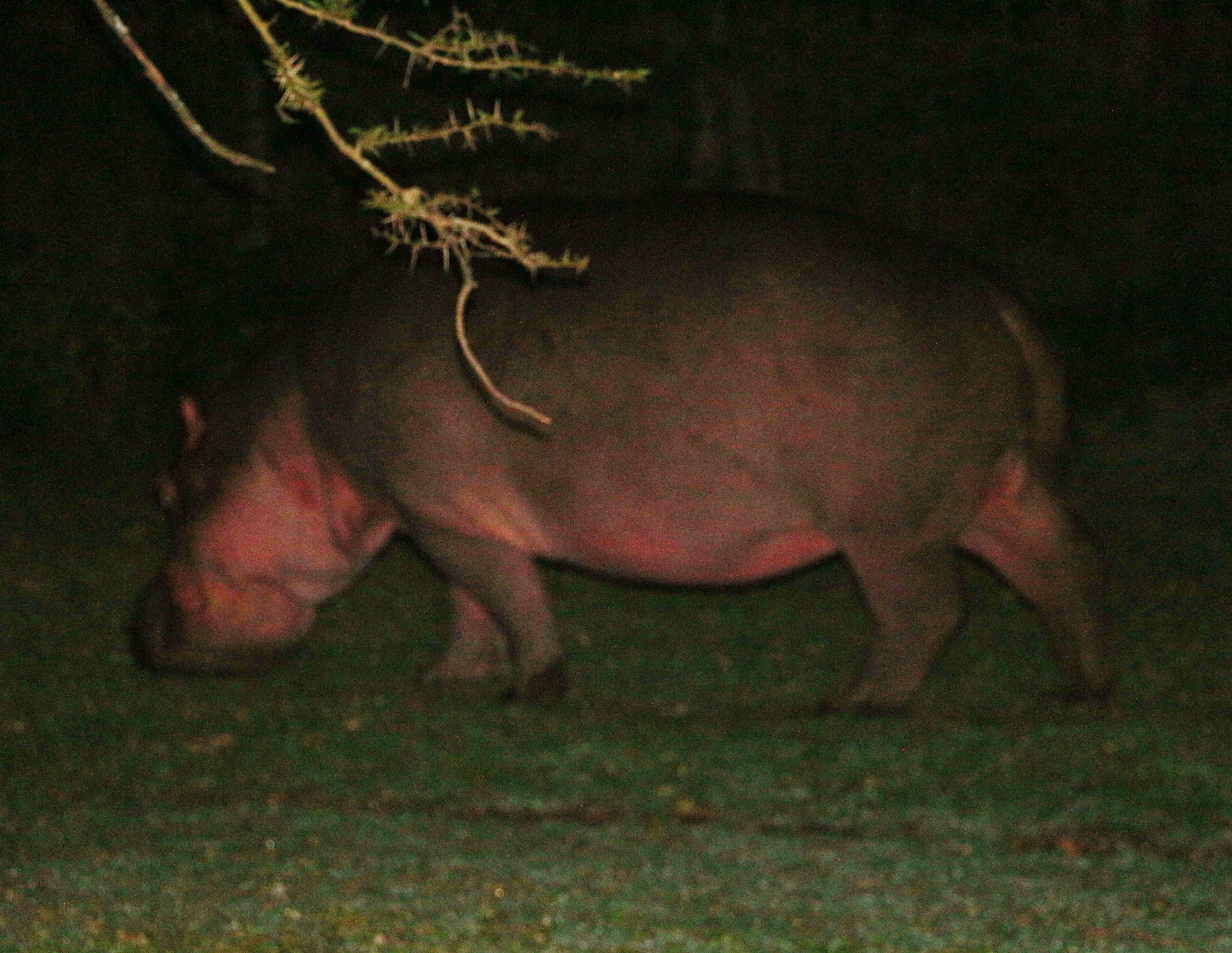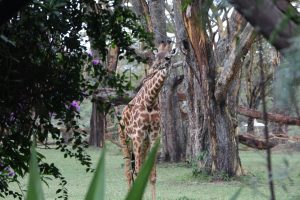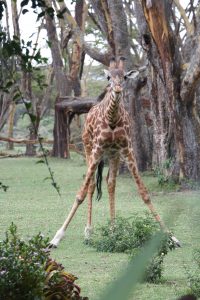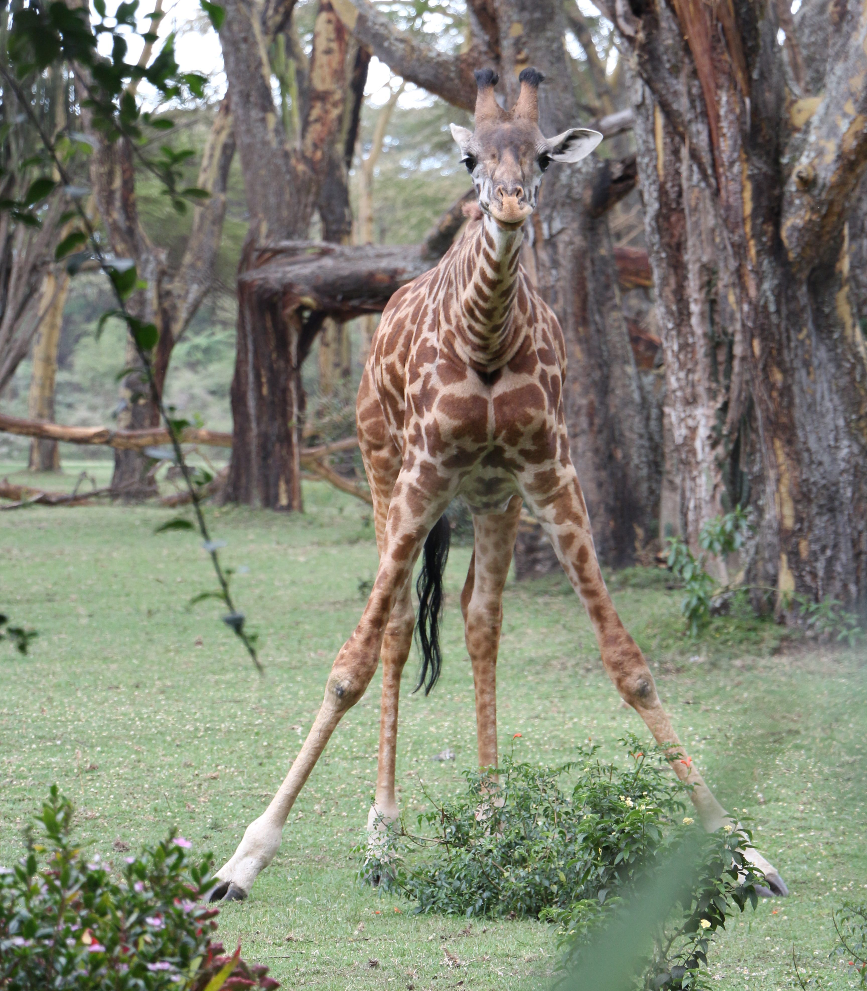 Ich wollte nur vom Bungalow zum Restaurant, als plötzlich eine rießen Giraffe vor mir stand. War zuerst sehr erschrocken und lief langsam zurück, dann ging sie aber weiter.