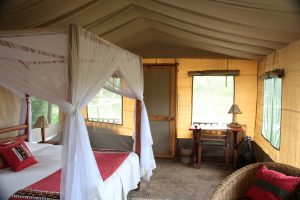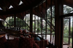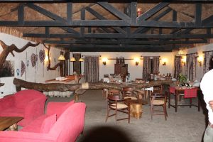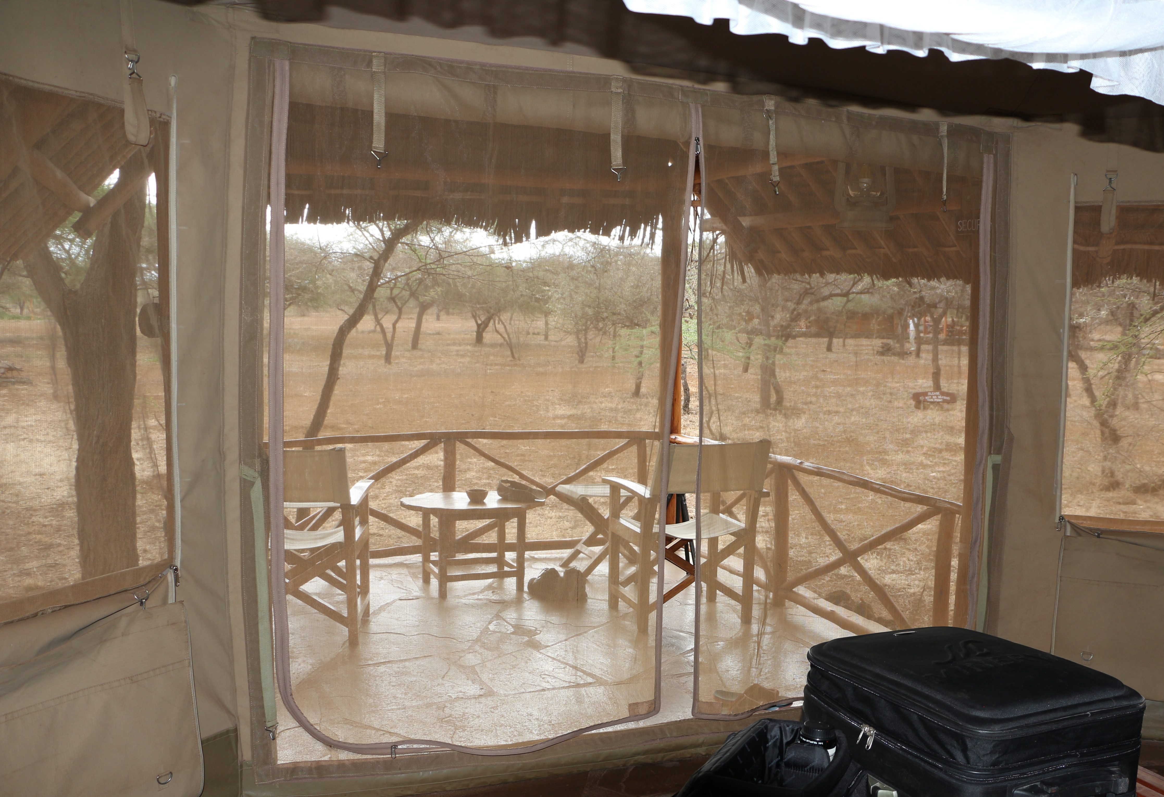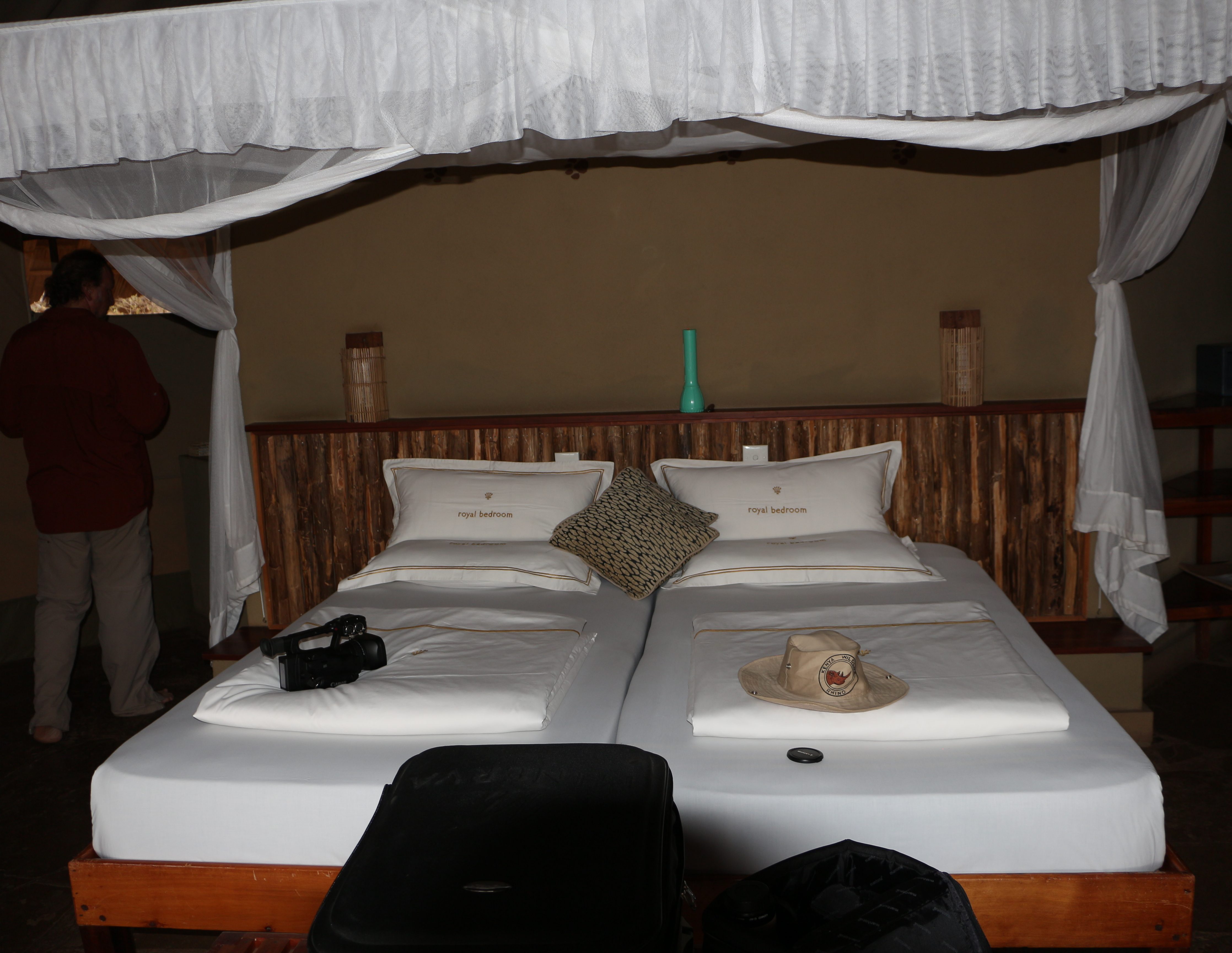 Diese Lodge besteht im vorderen Teil (Schlaufraum) aus extrem starkem Zelt. Der hintere Bereich (Dusche und Toilette) sind gemauert.