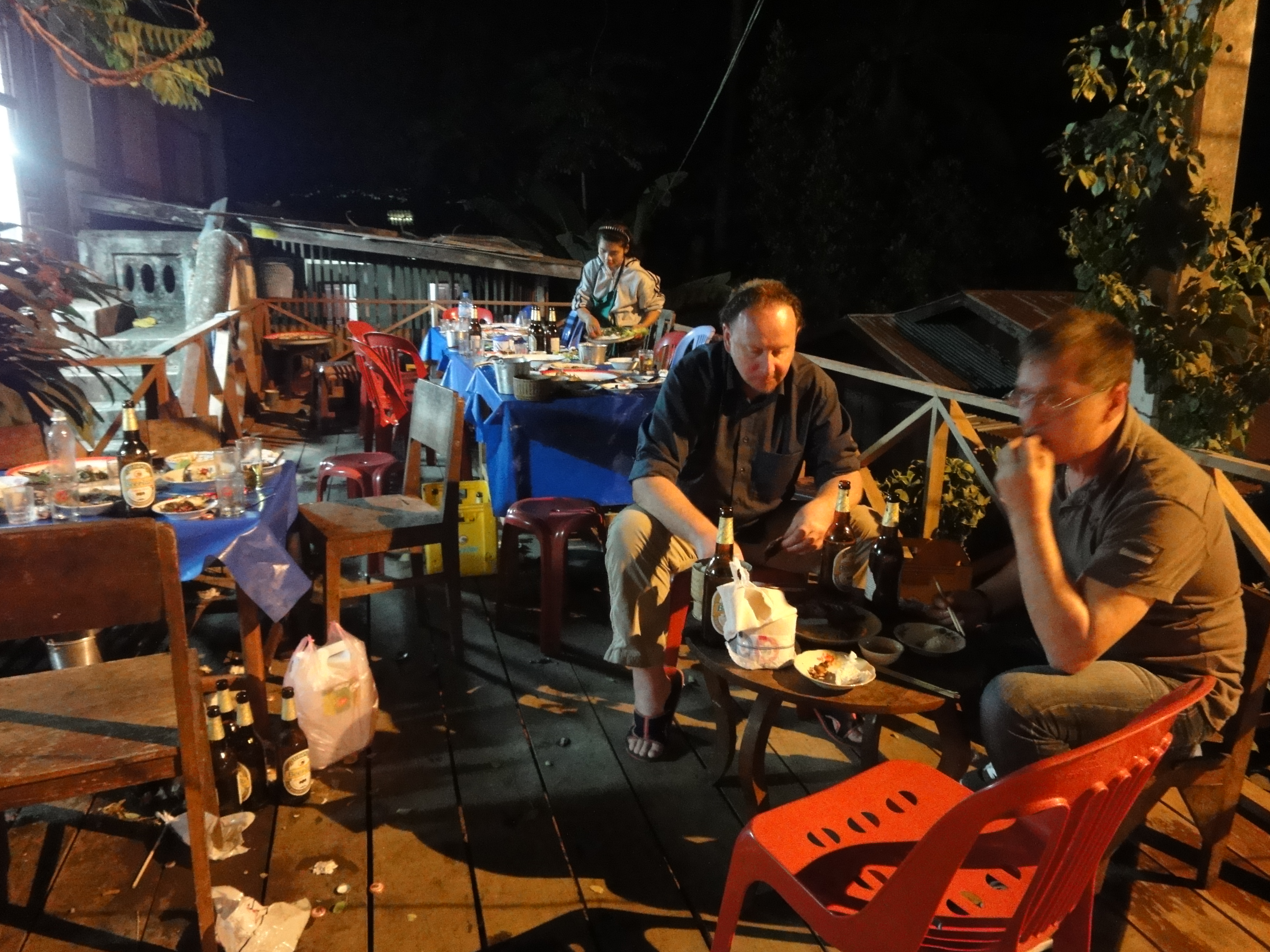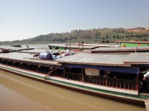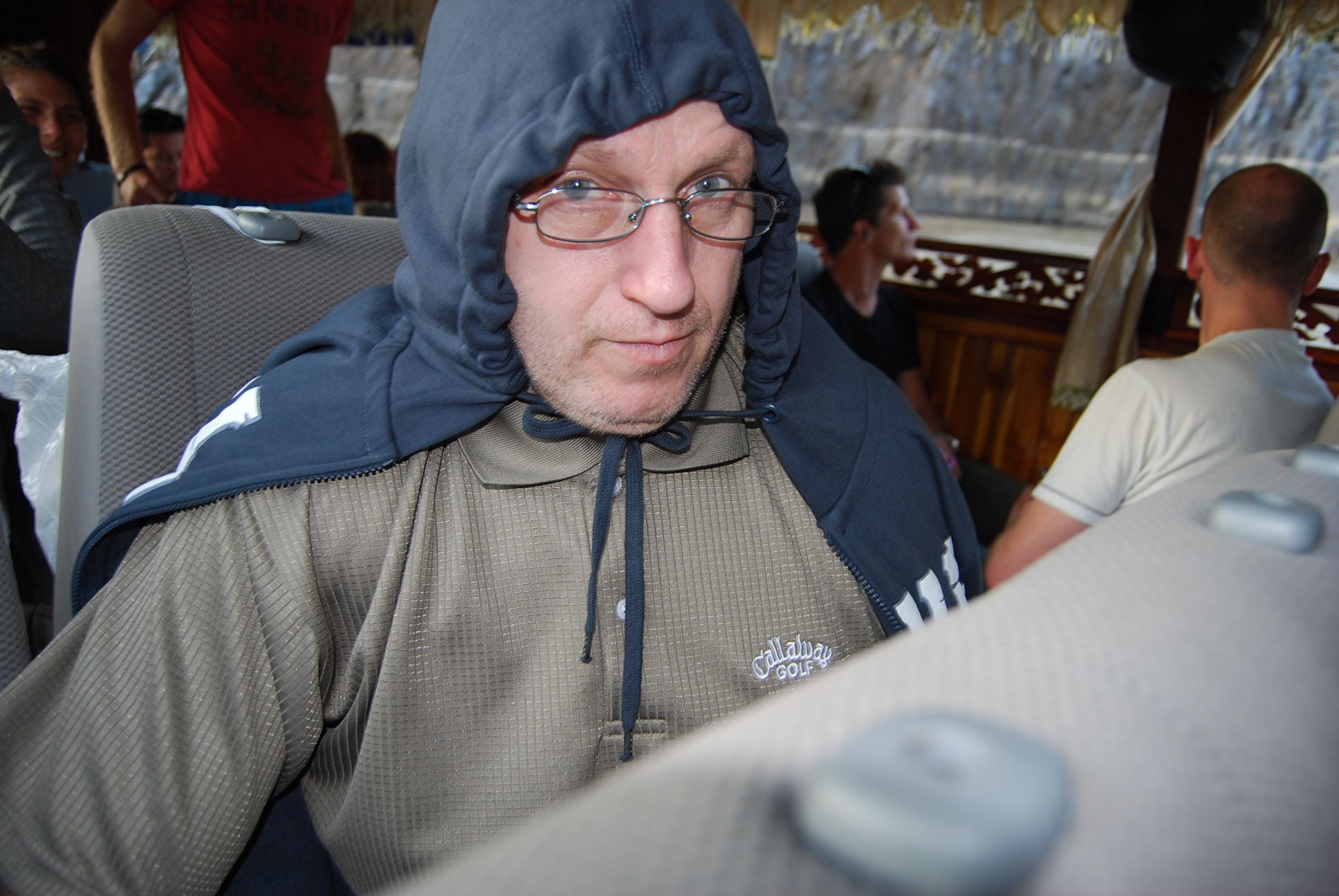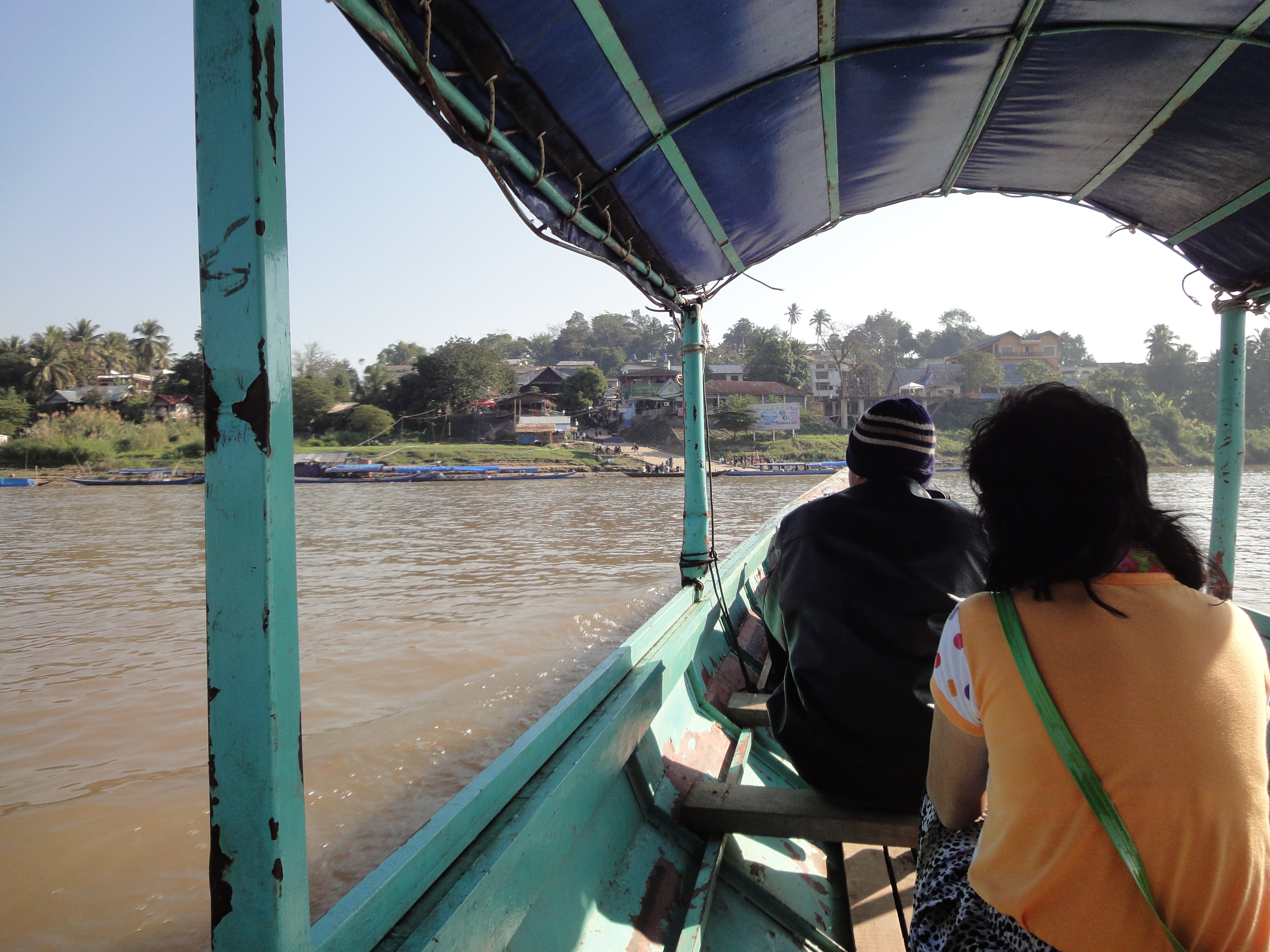 Da ich schon viele Jahre in Thailand war und noch nie eine lange Hose oder Jacke brauchte, war ich es nicht gewohnt dass es nördlich auf dem Mekong doch sehr frisch war. Leider hatte ich meine Jacke im Boot unter dem Boden unten drinn, so dass man während der Fahrt nicht mehr rann kommt. Zur not behalf ich mir alles erstes mit einer selbst gemachten Tasche von meinem Tablet (wegen meinen empfindlichen Ohren). Mein Freund konnte sich das nicht mit an sehen und gab mir mitleidsvoll seine Jacke.