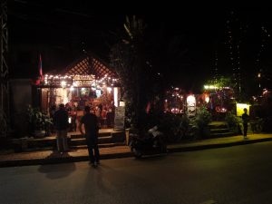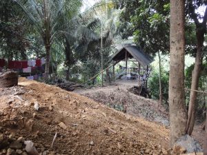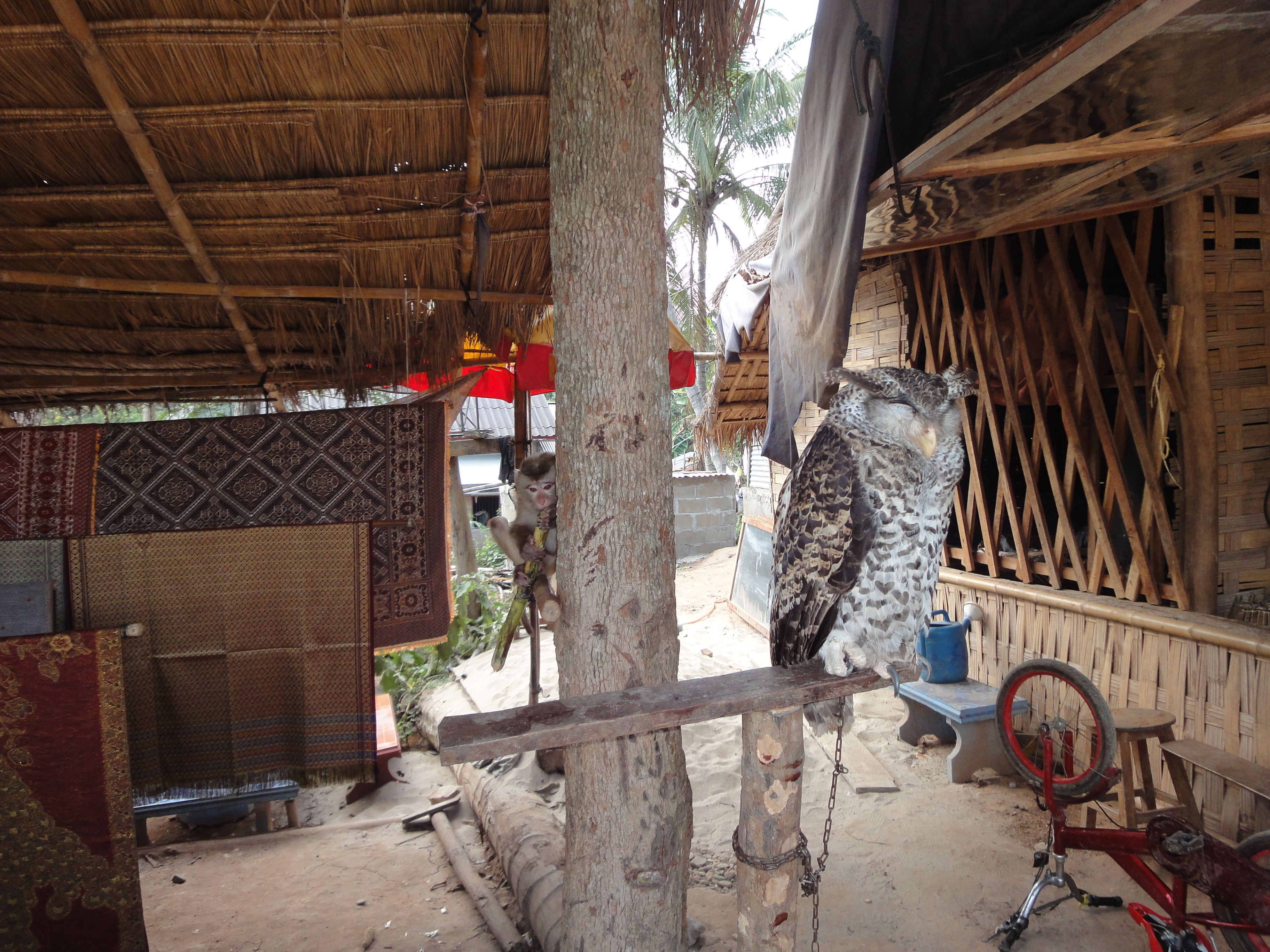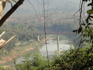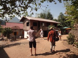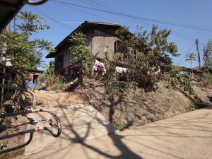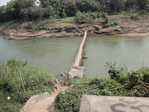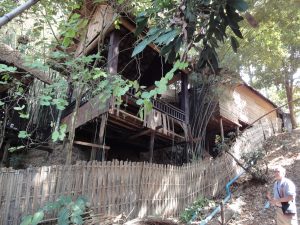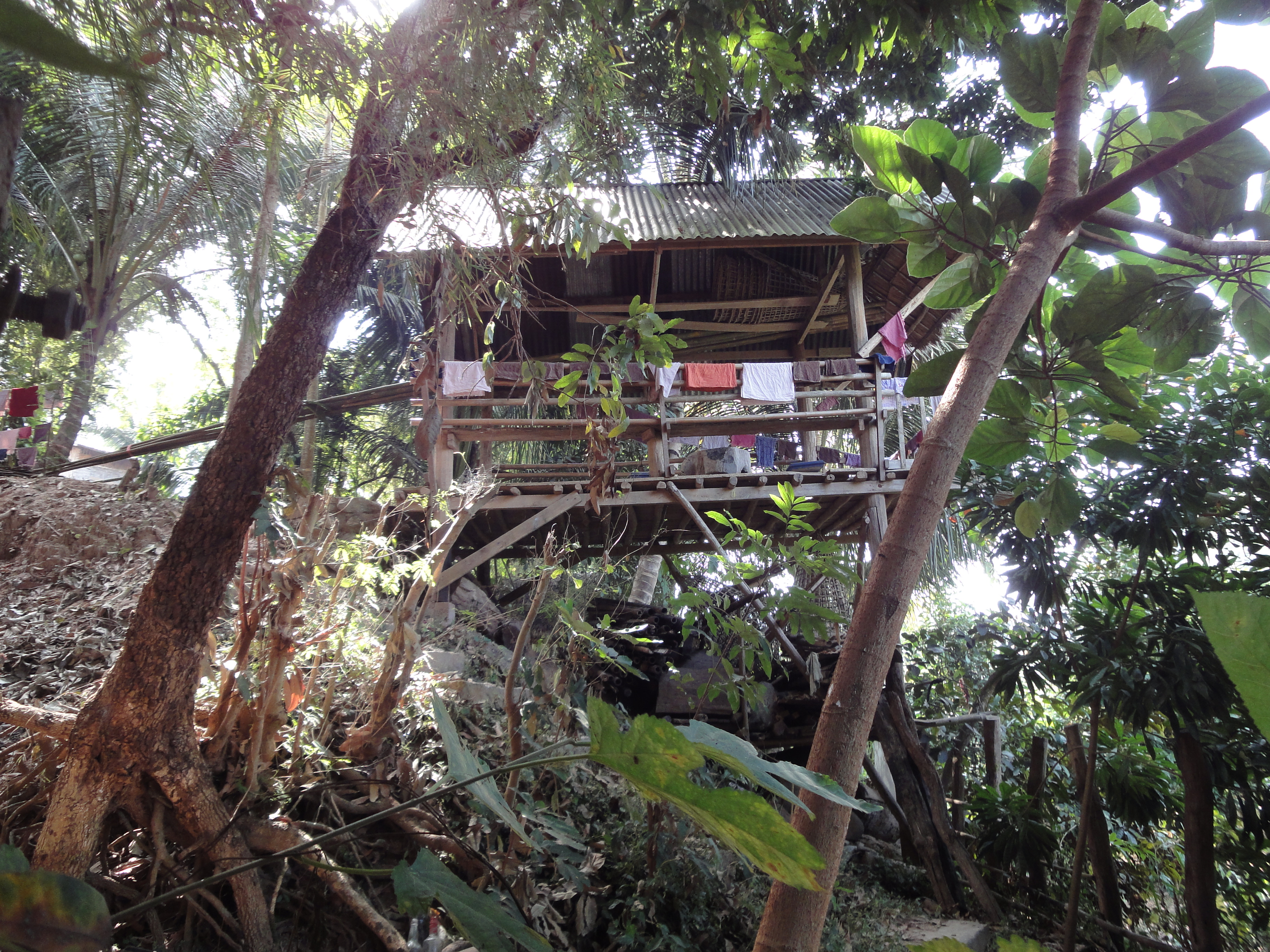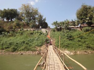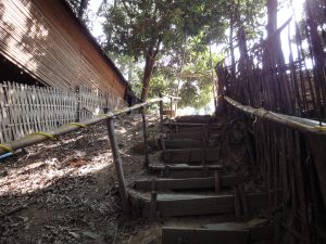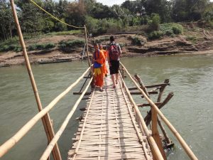 Über diese Brücke kommt man in ein sehr kleine Siedlung, sogar wieder mit kleinem Tempel. Hier bauen sie Häuser auch auf Pfählen, sehr urtümlich aber sehenswert.