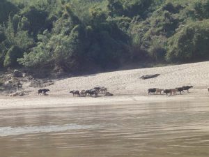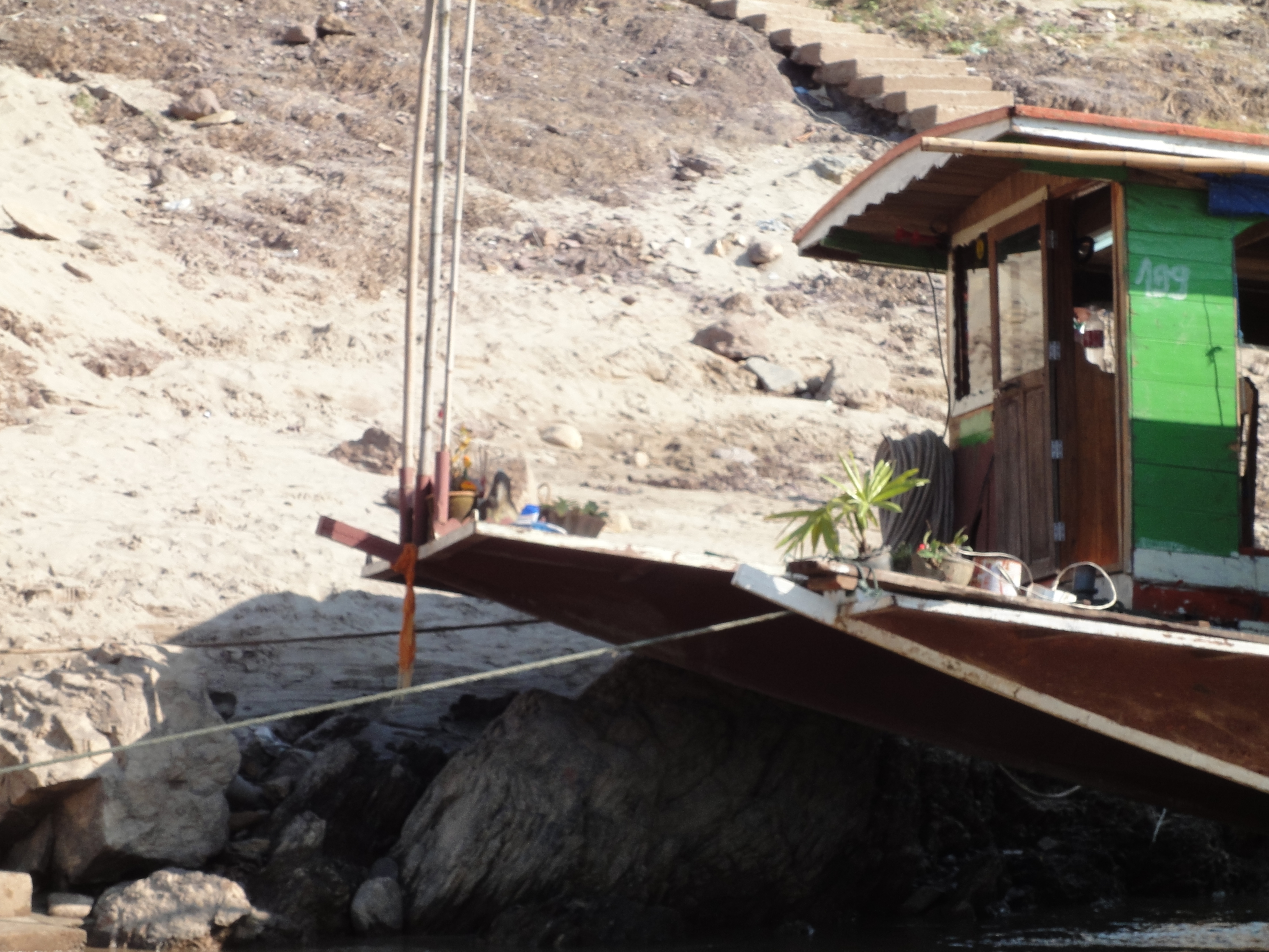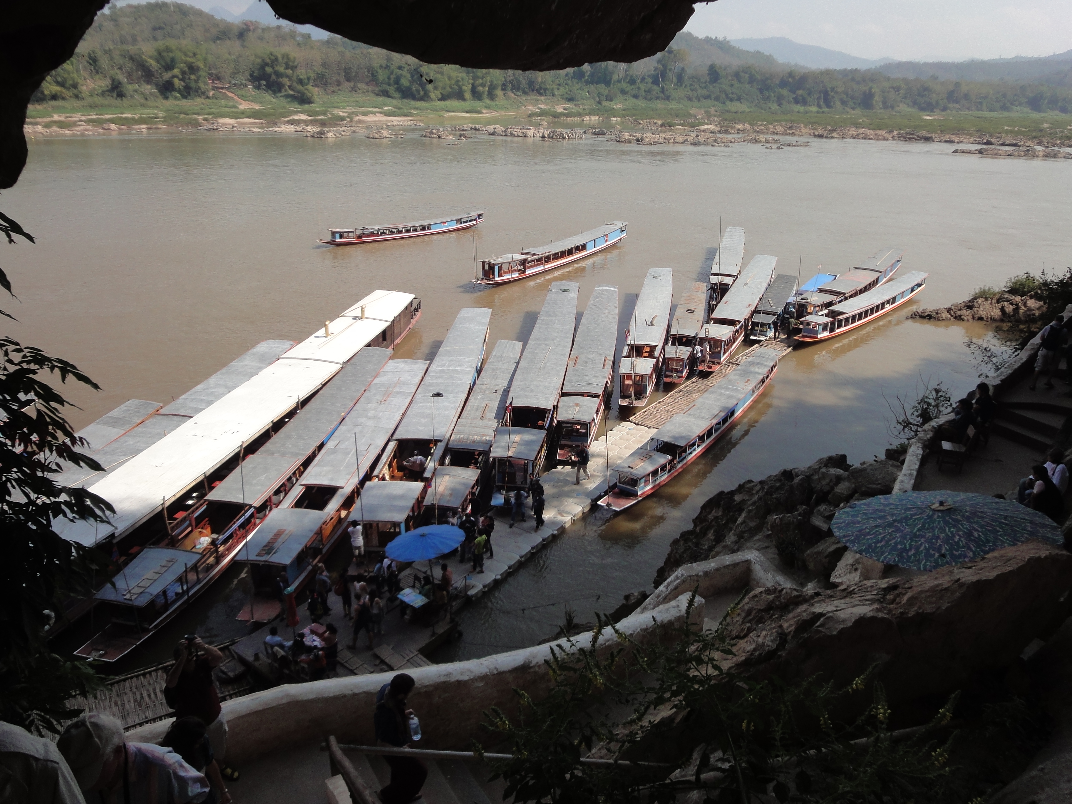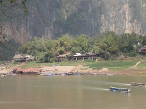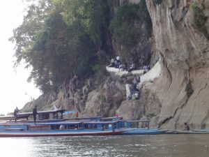 Jetzt geht es wieder zum Hafen und mit dem Boot rüber auf die andere Seite zu den Felsen, zu den Pak Ou Höhlen.
