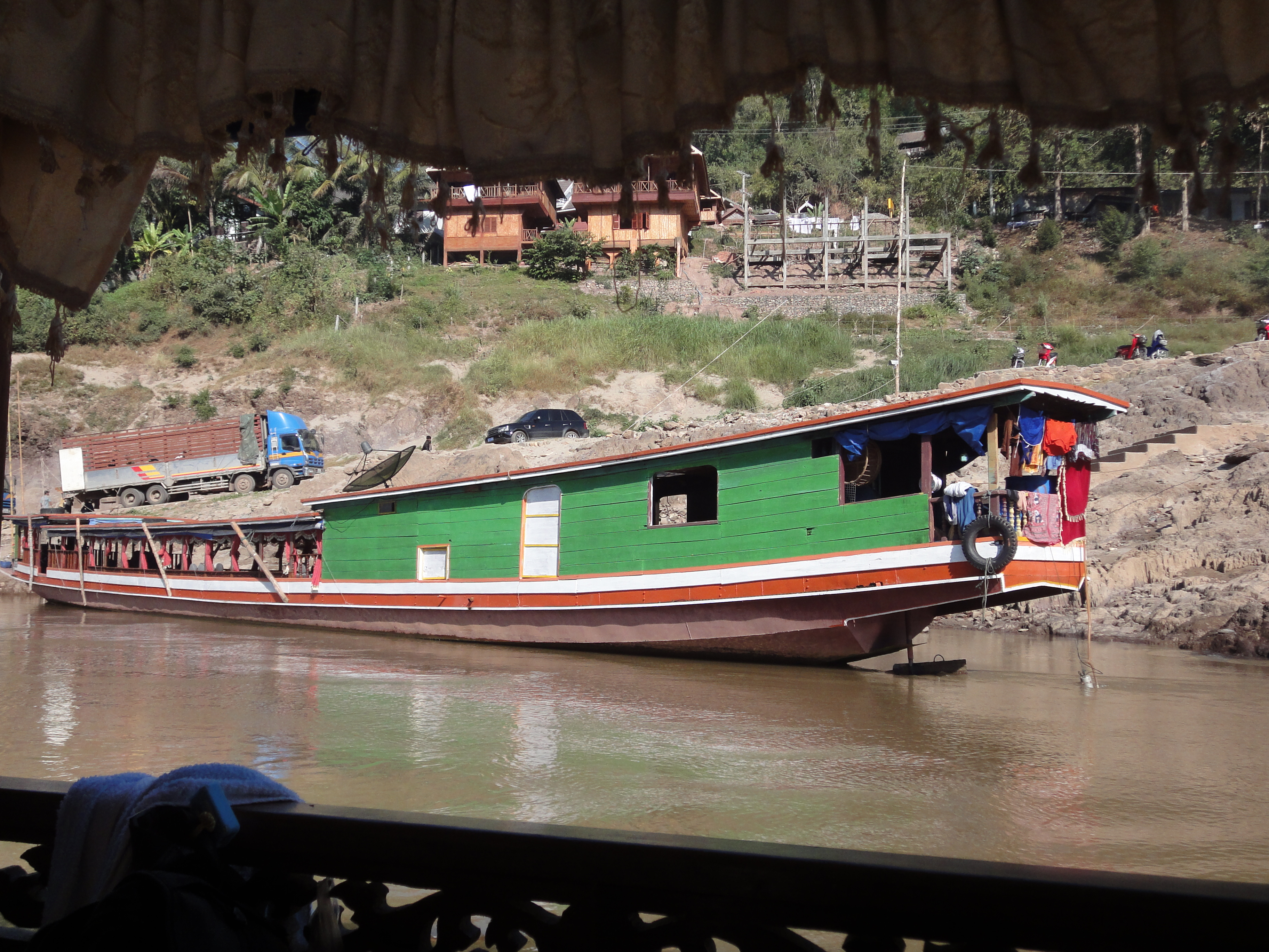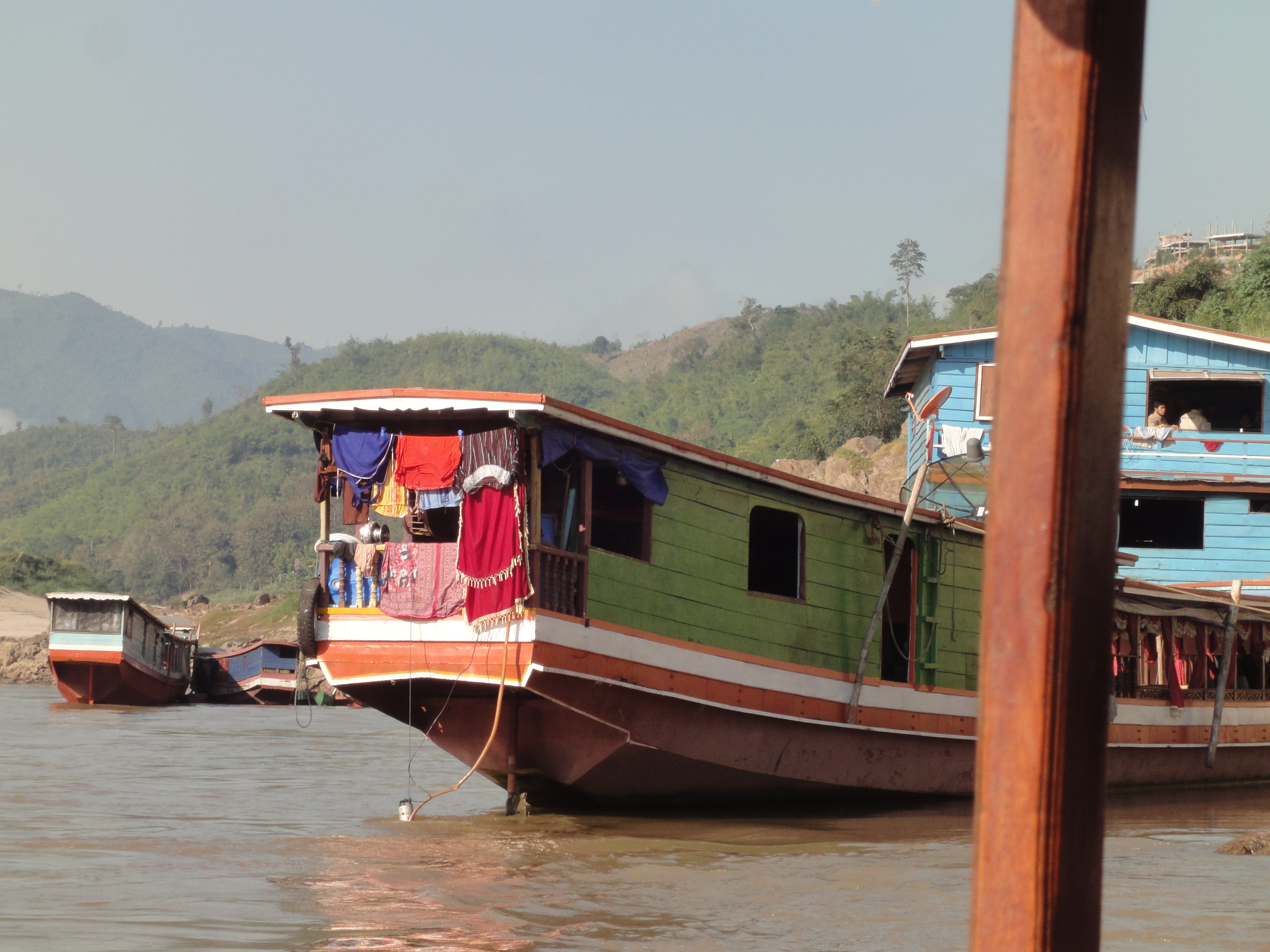 Auf der Fahrt von 5 Minuten zu unserem nächsten Hafen bekamen wir schon mal die ersten Eindrücke von Laos