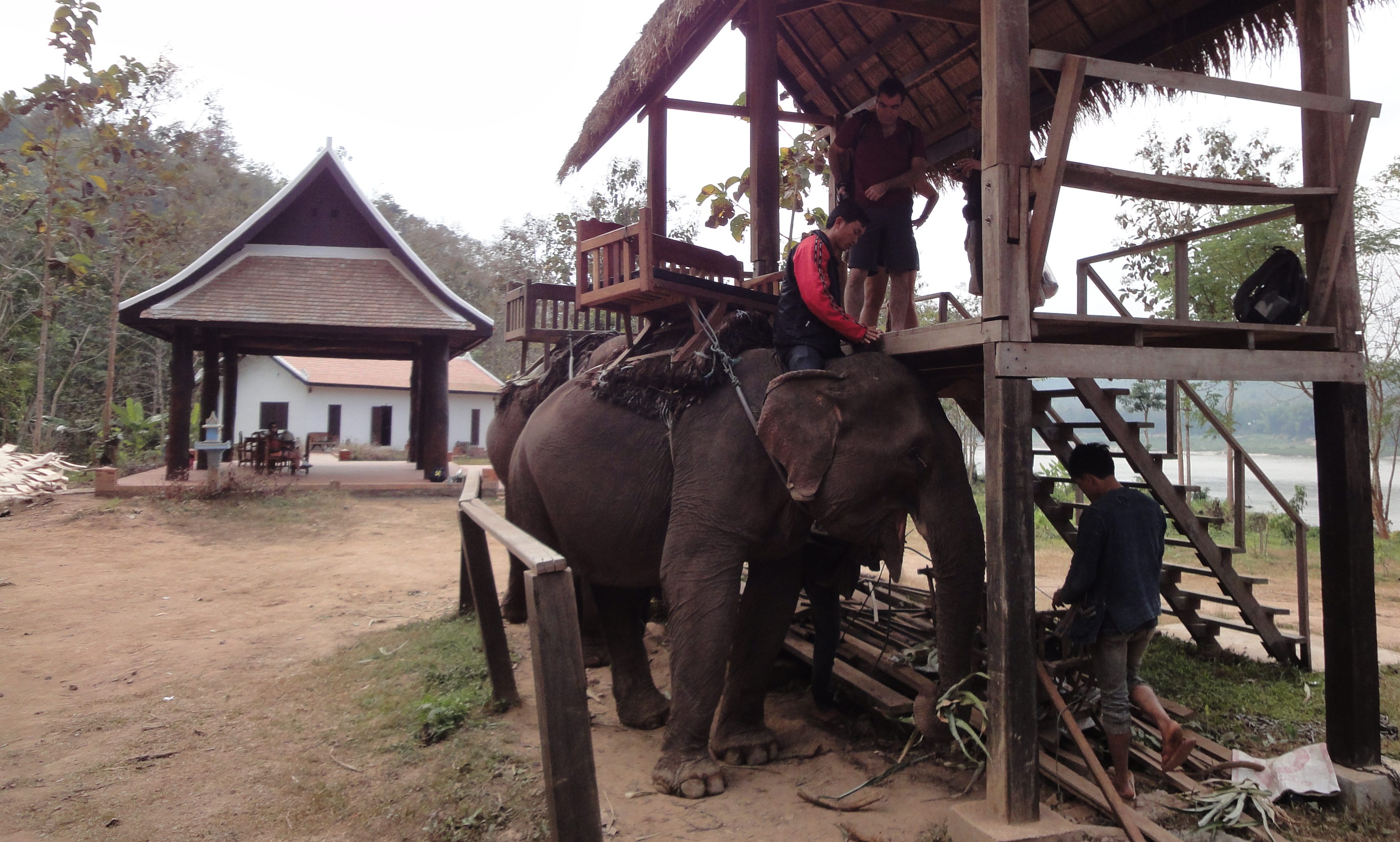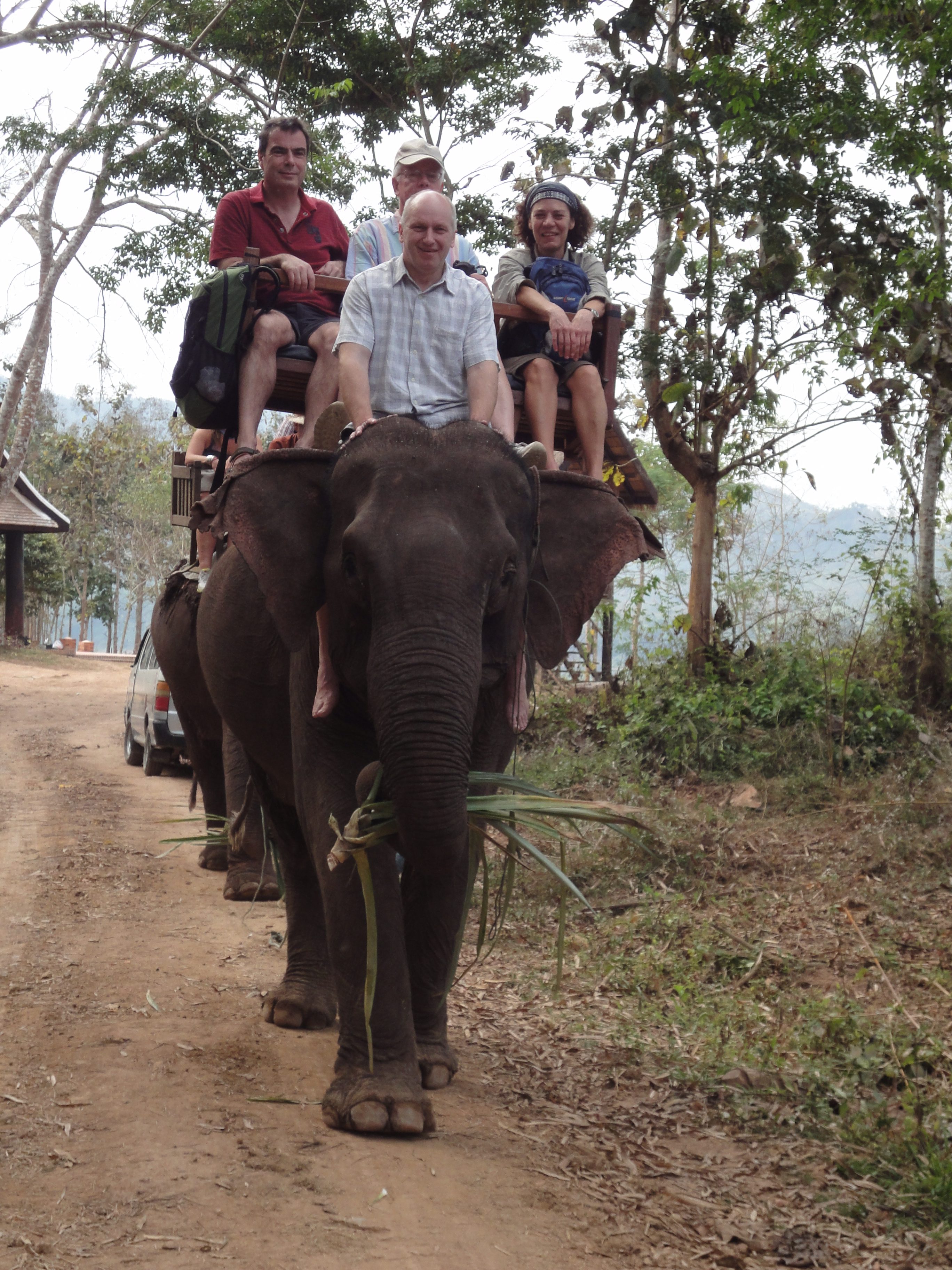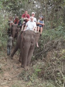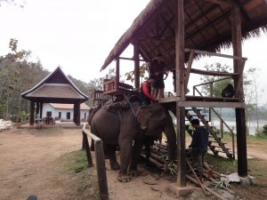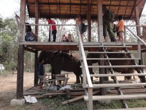 Auf dieser Rampe steigt man auf den Elefanten. Ich wollte erst auf die Bank sitzten, aber dann sagte man mir ich solle warten. Nachdem die drei anderen auf die Bank sind sagte man zu mir ich soll jetzt aufsteigen und zwar vorne. Ich wunderte mich und dachte hier sitzt doch der Elefantenführer, aber er selber ging zu Fuß. So wurde ich zum Elefantenführer. Mir war aber nicht wohl dabei, durch das unebene Gelände fürchtete ich etwas dass ich abrutschen könnte. Aber der Führer sagte ich solle mich an den Ohren festhalten. Hinterher tat mir der A…. etwas weh, weil die Schulterknochen des Elefanten sich beim Laufen abwechselten auf und ab bewegten. War aber ein Erlebnis wert.